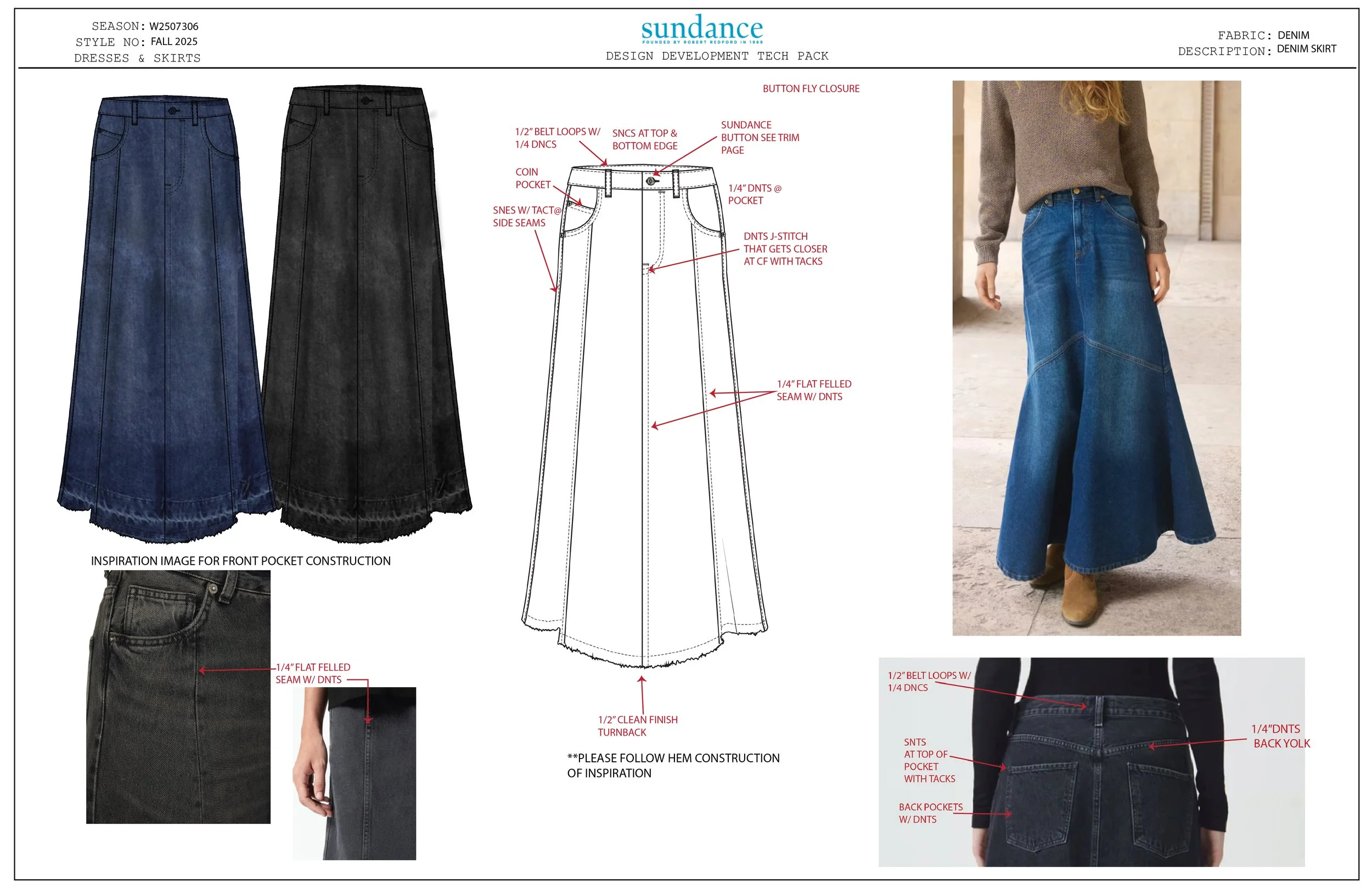 Expertise includes mood boards, color development, assortment planning, hand and digital sketching, original print creation and recoloring, engineered prints, embroidery design, yarn-dye development, as well as Tech Pack creation and garment specifications.